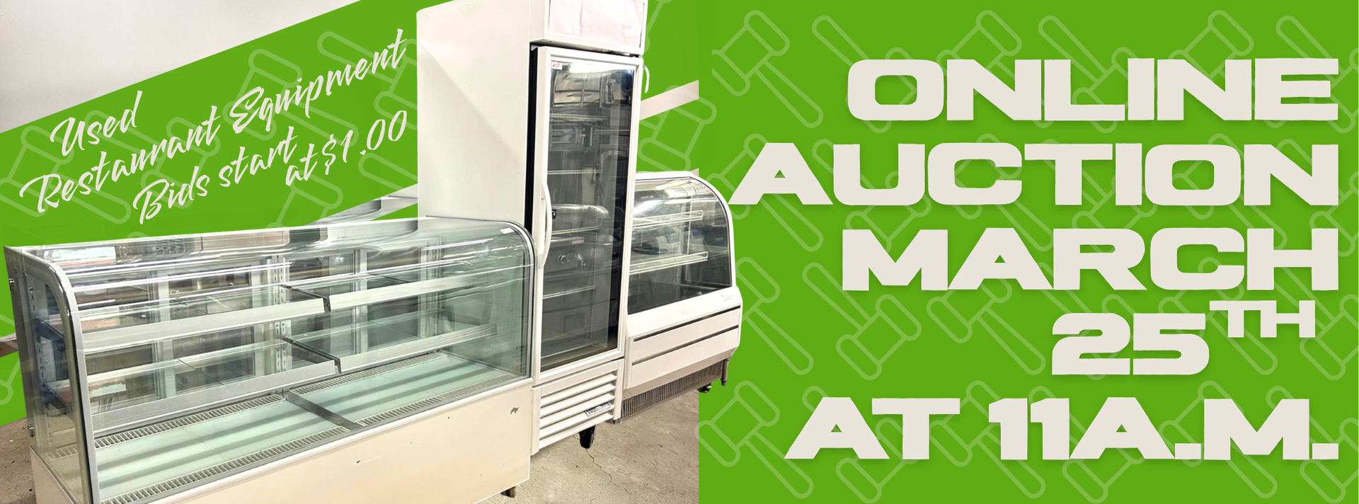 Being traditionally a in person live auction house we have decided to upgrade and host them online! Why leave your business unattended in order to get a better deal, place your bids without the worries and hassles of not being there. We don't stop there, we also offer delivery at an extra cost in Los Angeles and surrounding areas so you don't have to worry about getting what you won, we delivery them right at your business door steps. We got you covered. For more information give us a call!
